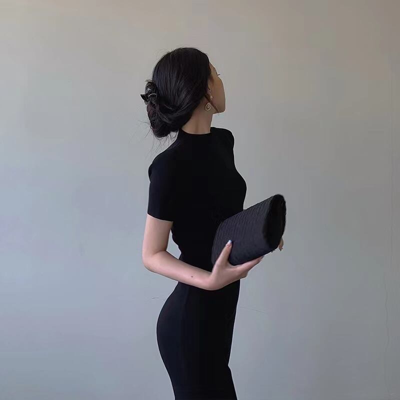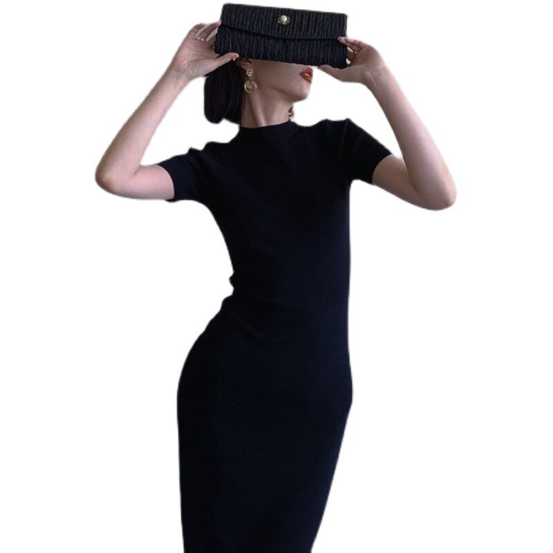 ブラックニットワンピース ニットボトミングワンピース ニットワンピース. ニットドレス 半袖 ワンピース ドレス. ミモレ丈 レディース ブラック. 綺麗め. セクシー オフィスコーデ デート お呼ばれコーデ a4486