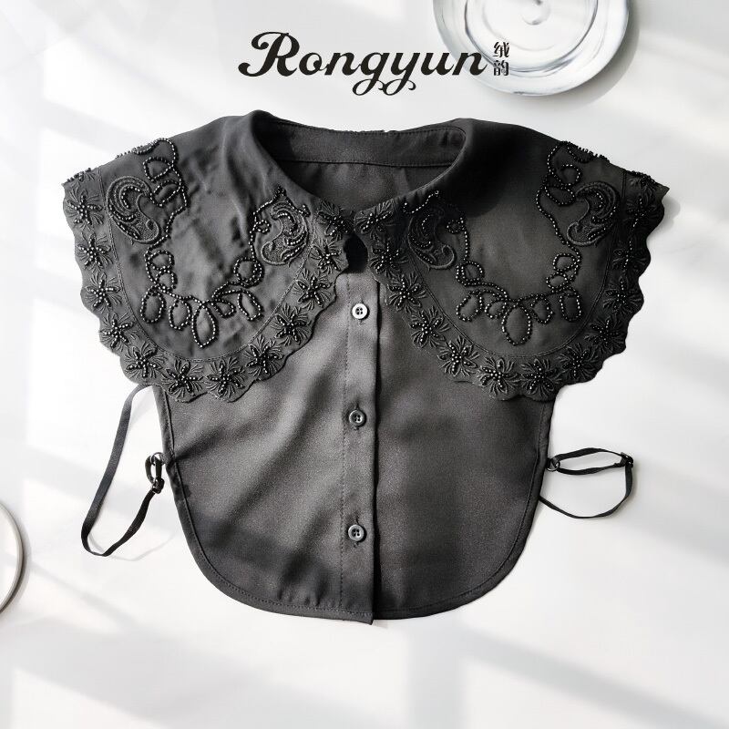花柄刺繍付け襟 つけ襟 レディース 女性 重ね着風 レイヤード風 スカラップ レース 刺繍 花柄 フラワー フェイクパール 前ボタン C178