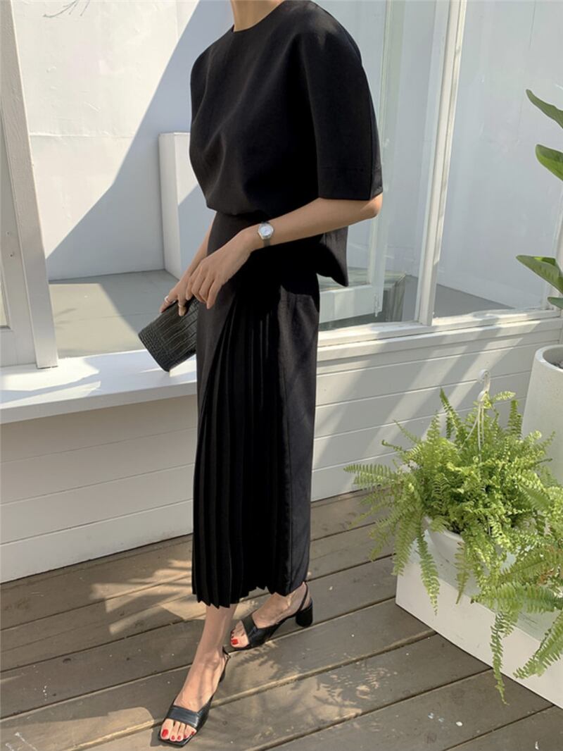 【セットアップ】パフスリーブトップス+サイドプリーツスカート