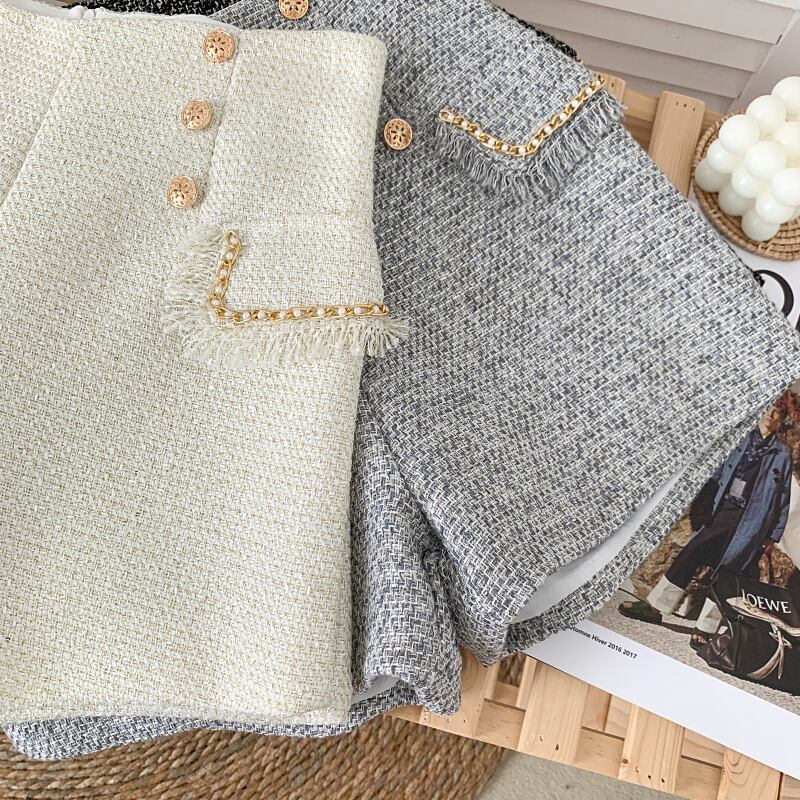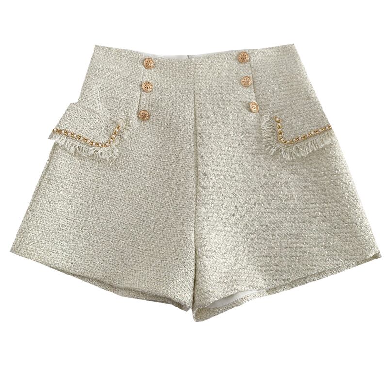 ツイードショートパンツ ゴールドボタン ツイード柄 ショートパンツ ハイウエスト ボトムス レディース オフィスコーデ 通勤 ママコーデ 3カラー D11