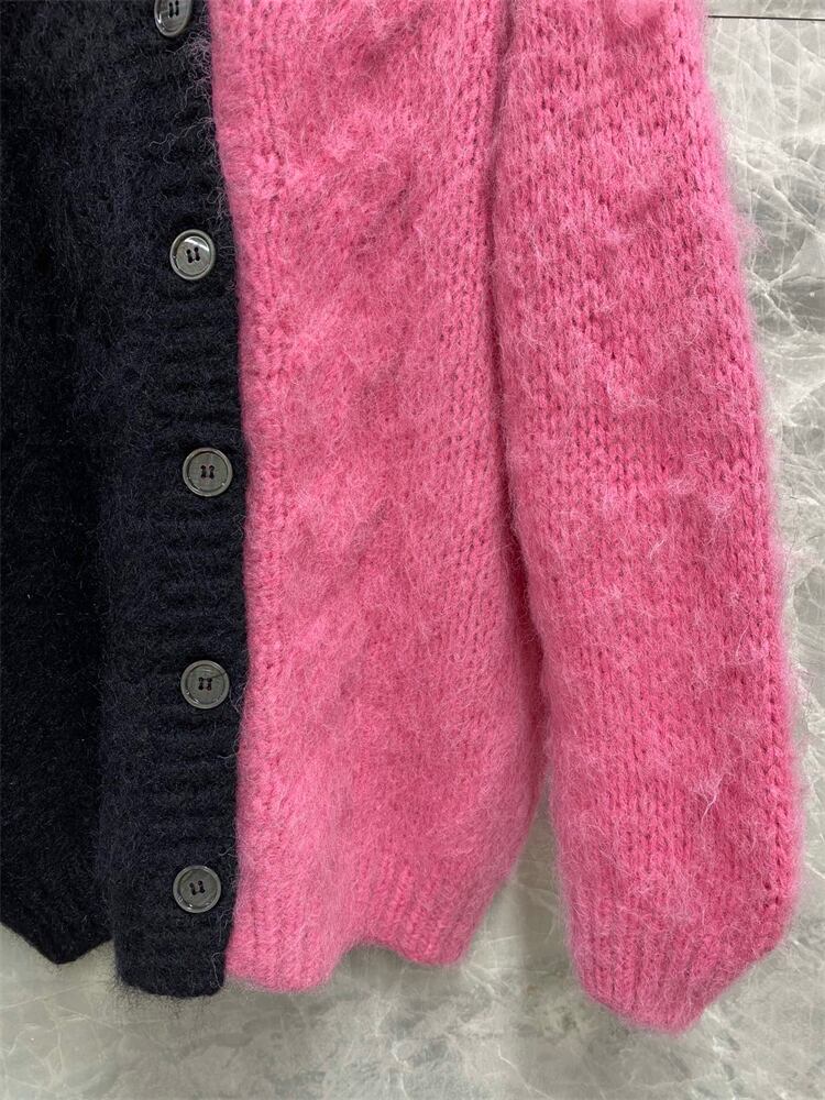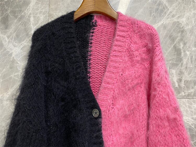 バイカラーニットカーディガン プルオーバー ニットカーディガン オーバーサイズ ニット セーター カーディガン ジャケット アウター 秋冬 レディース モヘアステッチ 韓国 オルチャン D144
