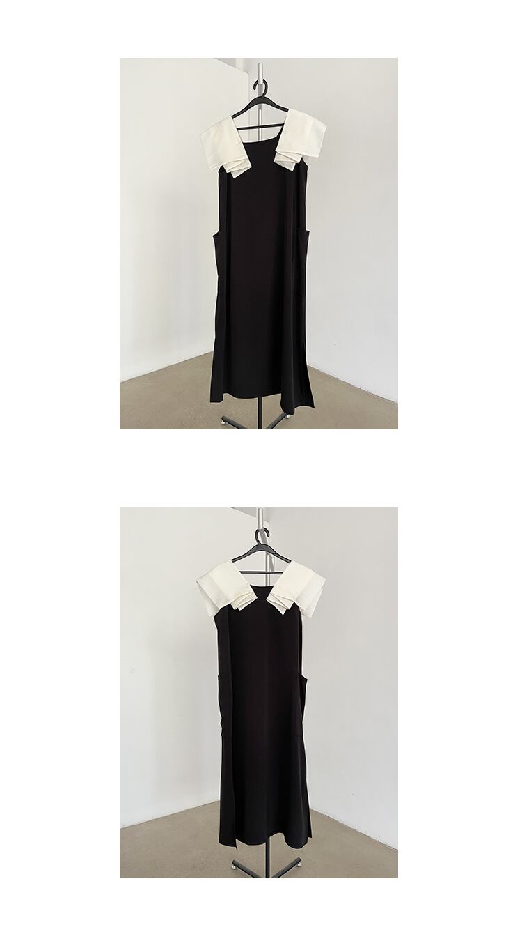 ホワイトネック ノースリーブワンピース ブラックワンピース 配色 ワンピース ドレス レディース フレンチ 上品 可愛い デート ゆったり C202