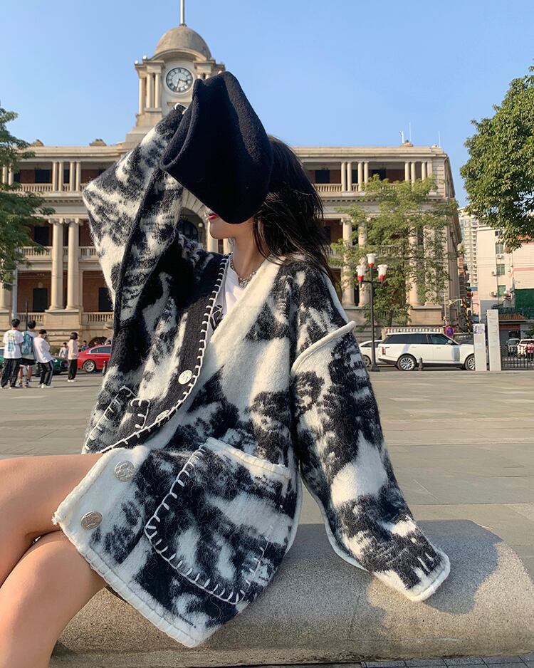 タイダイ柄に大きめステッチがオシャレなニットカーディガン