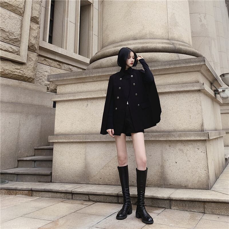 ケープ ポンチョ ミリタリー風 レディース コート 軍服風 ダブルボタン エレガント ブラッ クベージュ マニッシュ ガーリー かっこいい フレア 羽織 20代 30代 40代 D72