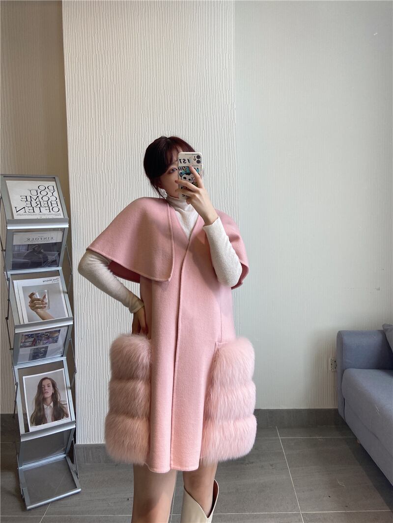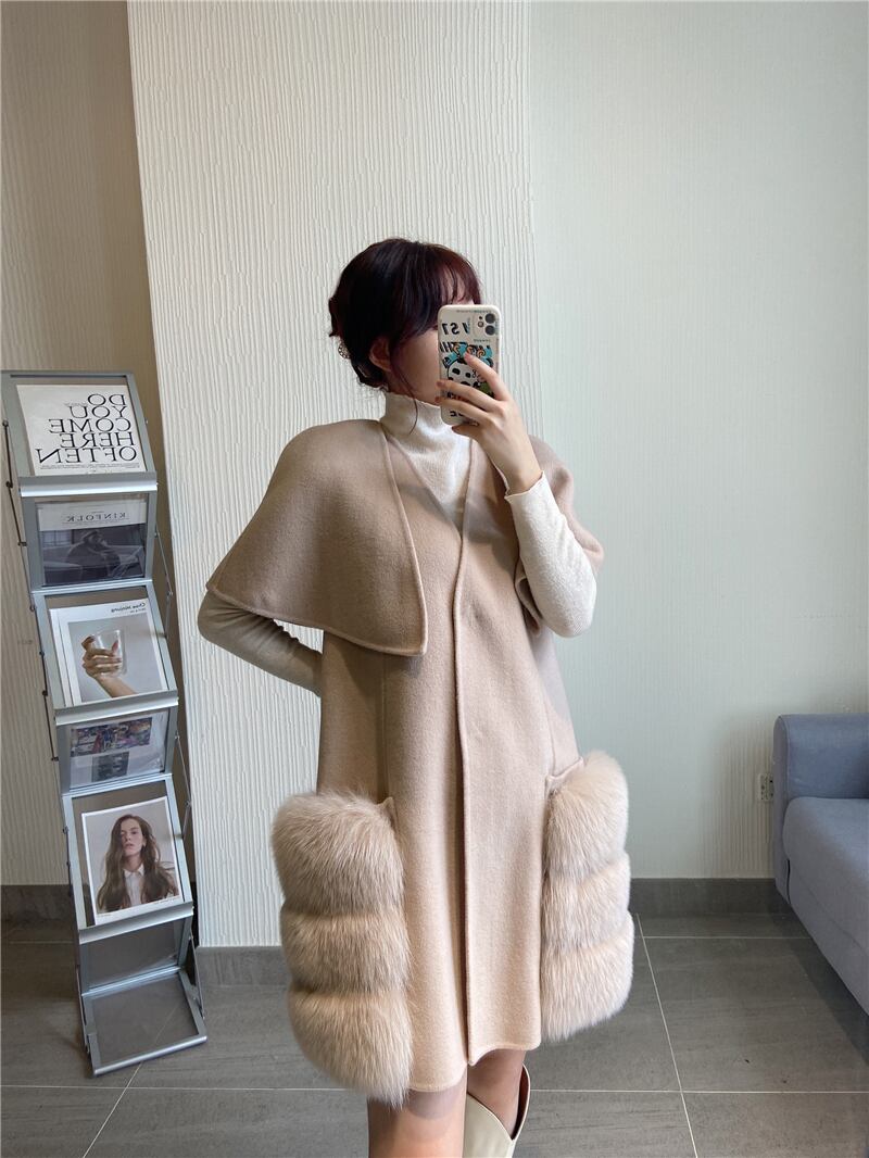 ウールマントコート ウール レイヤード風 フォックスファー ベスト ケープ コート ジャケット アウター 上品 ゴージャス 5カラー レディース D143