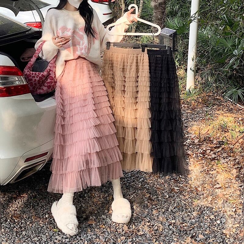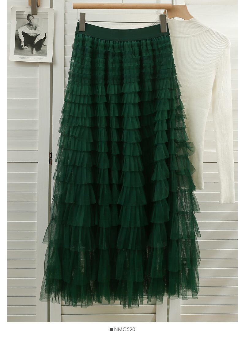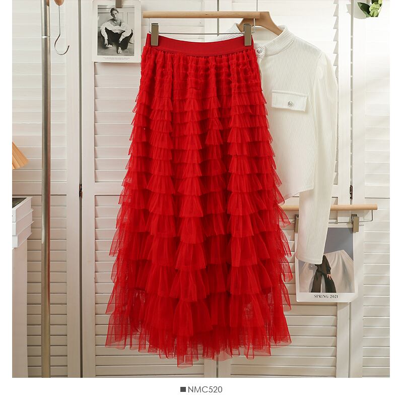 ティアードメッシュスカート ティアードスカート メッシュスカート フリルスカート ロングスカート ミモレ丈 レディース シフォン ハイウエスト Aライン フレアスカート ふんわり ボトムス 春夏秋 スカート 11カラー D120