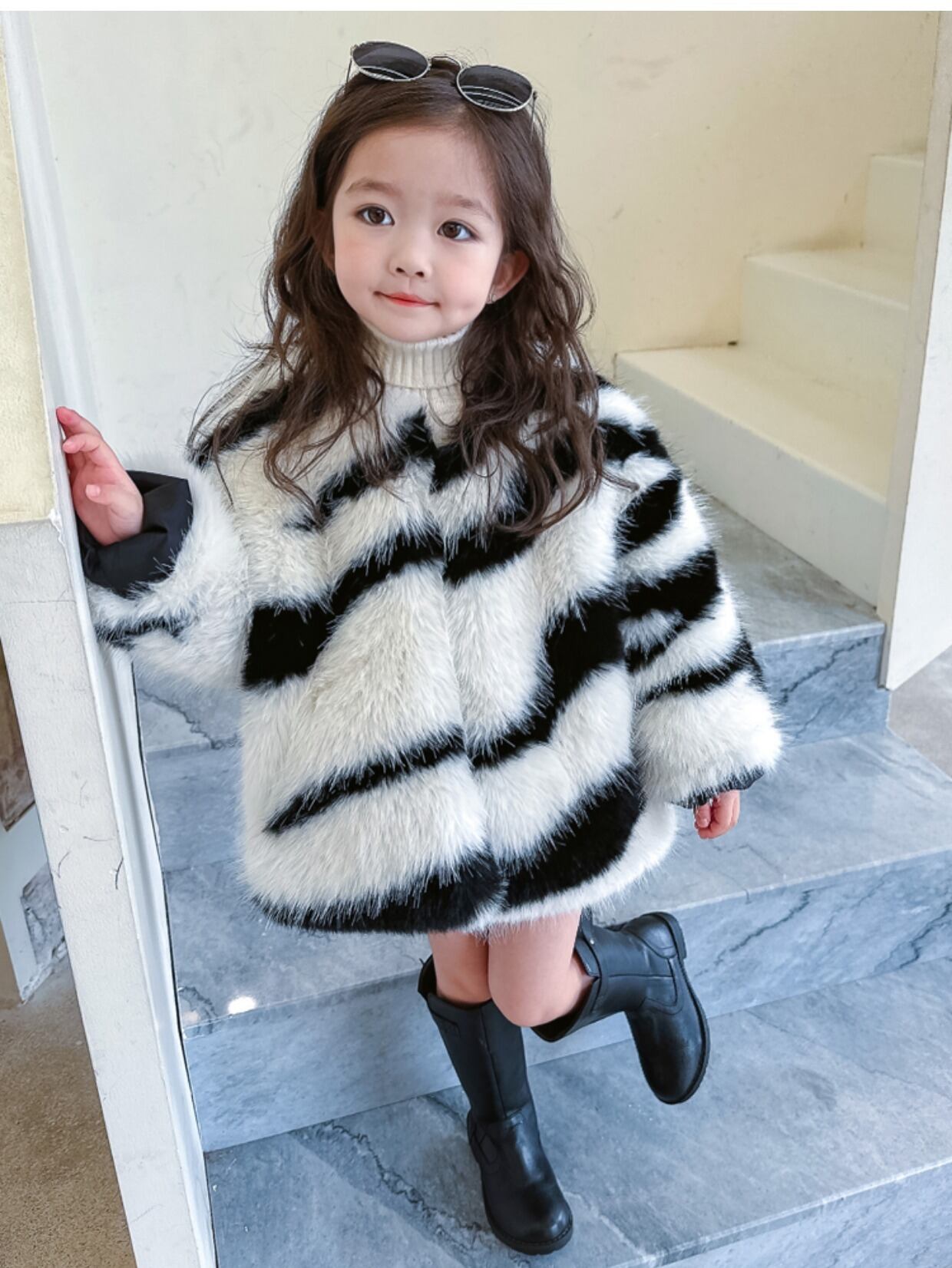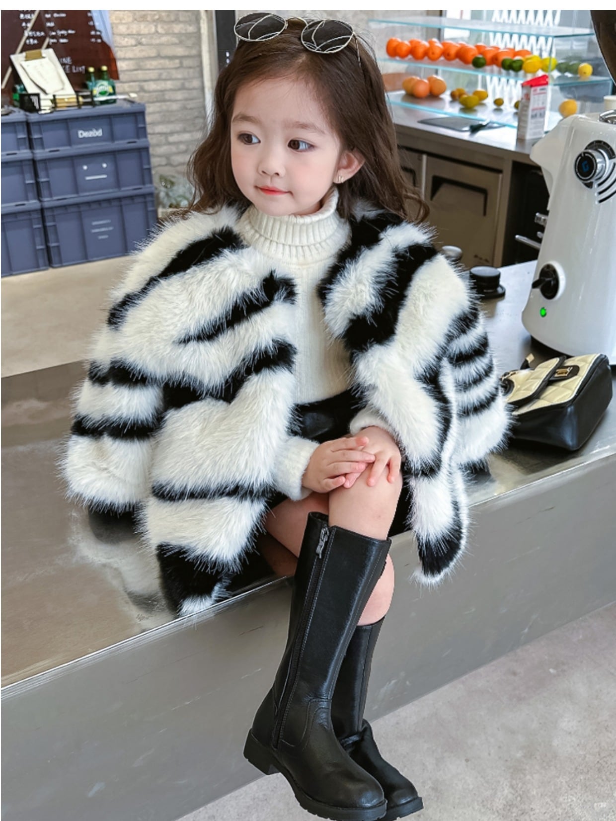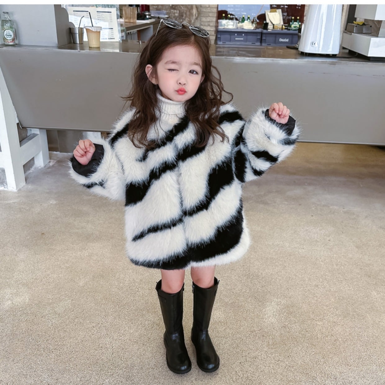 ゼブラ柄ファーコート. キッズコート. エコファー ファーコート. ファー コート ジャケット アウター 冬 子供服 D187