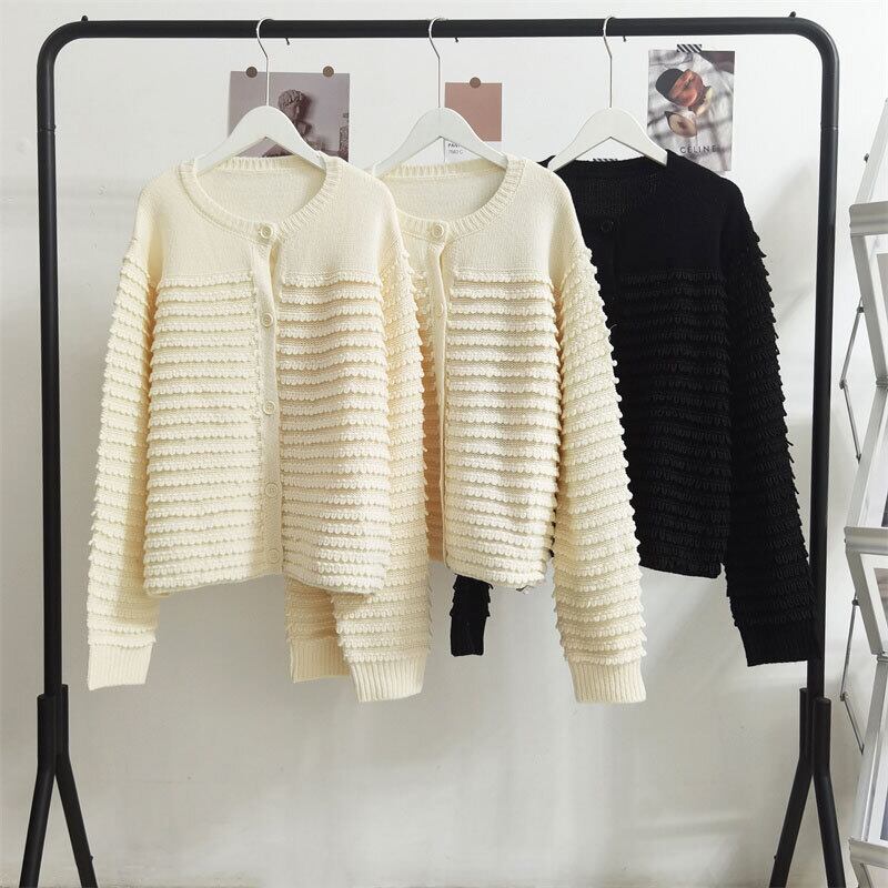 ぽこぽこフリンジがオシャレなニットカーディガン