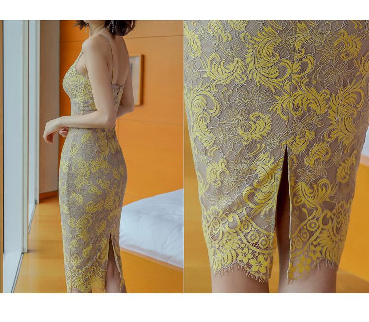 総レースキャミワンピース レース タイトワンピース 膝丈 ヒップパック ワンピース ノースリーブ パーティー キャバドレス セクシー 二次会 パーティー D239