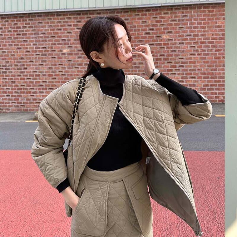 【セットアップ】キルティング ジャケット+ハイウエストスカート 上下セット キルティング set up ツーピース. レディース. ママコーデ お仕事コーデ 3カラー a4546