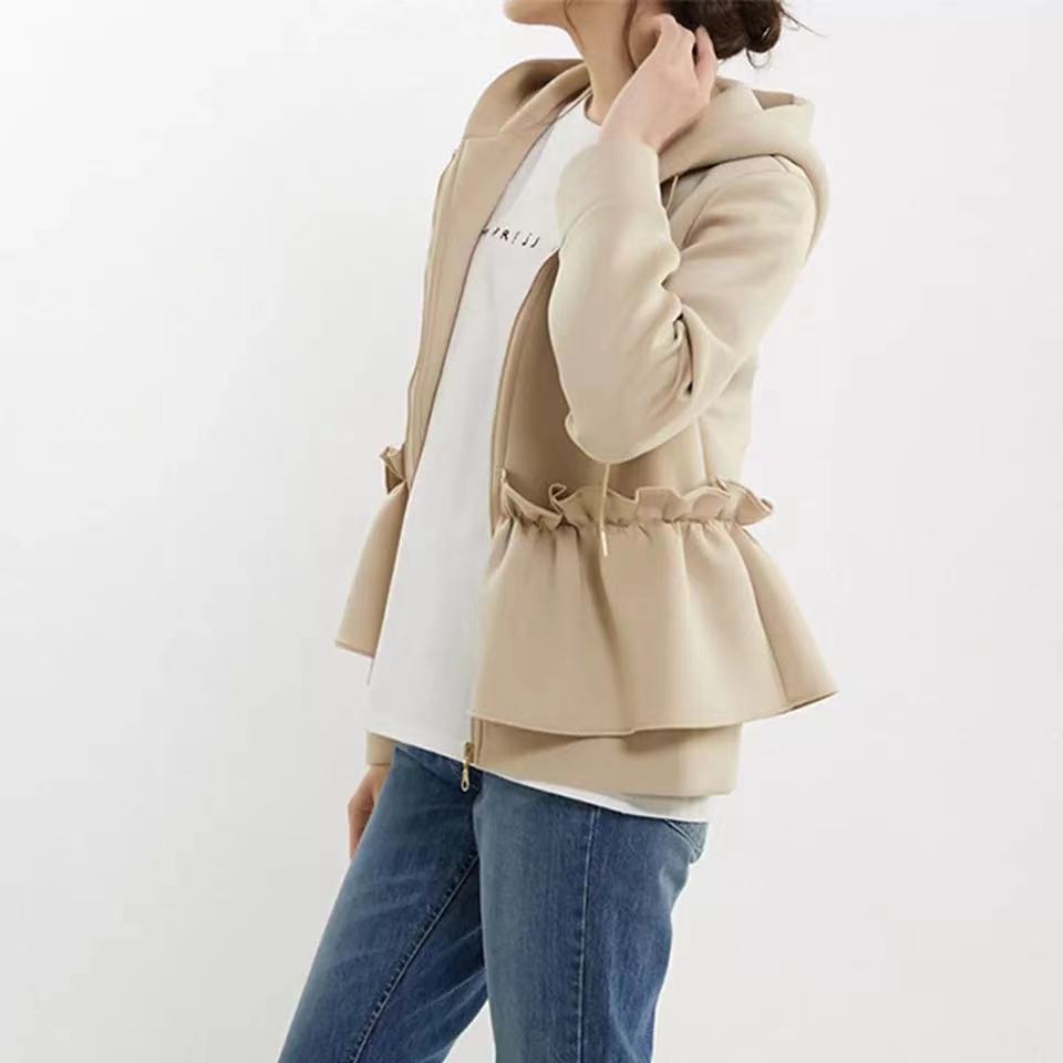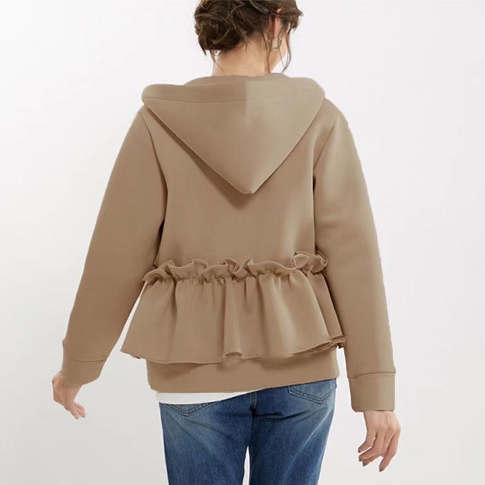 フリル パーカー ラウンドネック パーカー フーディー 長袖 フリル裾 無地 ビッグサイズ トレーナー レディース スウェット シンプル カジュアル 4カラー. D137