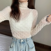 シアーハイネックカットソー 秋服 秋 冬服 冬 シアーカットソー シースルー カットソー トップス レディース インナー レイヤード. 5カラー a4553