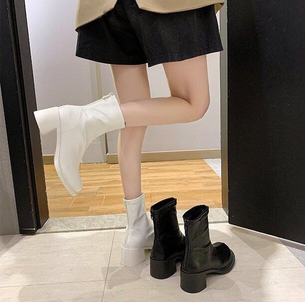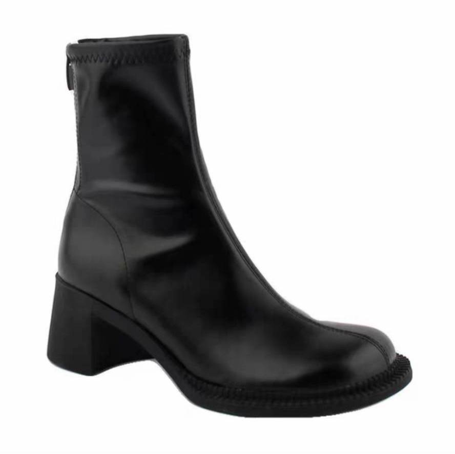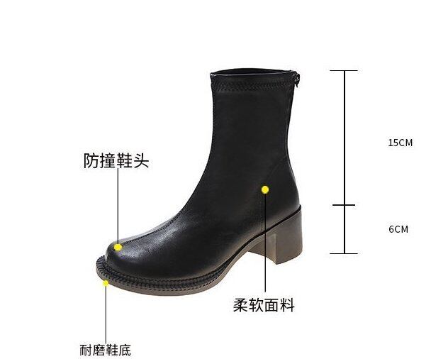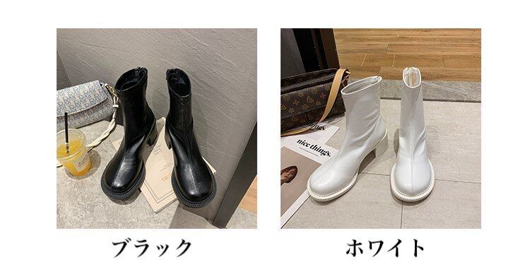 チェルシーブーツ レディース ミディアムヒール スリムチャンキーブーツ ショートブーツ ミドルブーツ レザーブーツ PUレザー チャンキーブーツ 太ヒール ラウンドトゥ 2カラー a4554