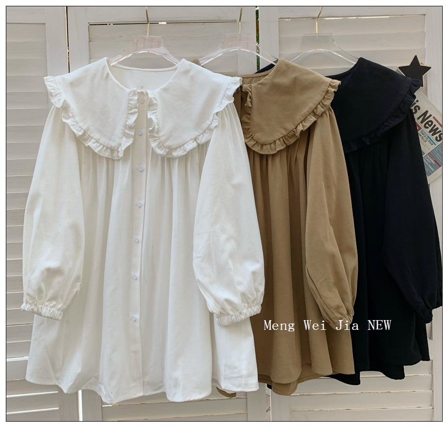 ボリュームフリルシャツ 厚手シャツ ブラウス シャツ 長袖 ニット セーター レディース ランタンスリーブ 無地 プルオーバー フリル パフスリーブ 大人かわいい フリルデザイン 5カラー D33