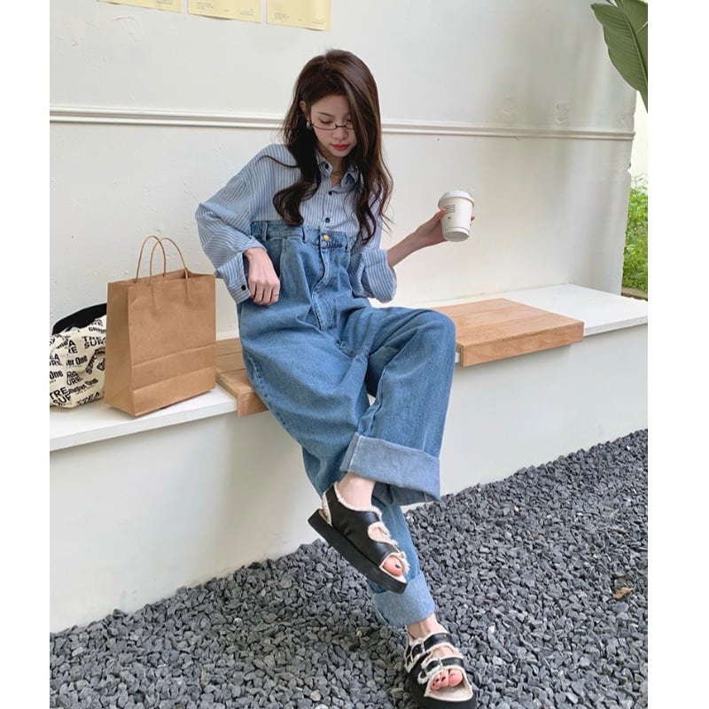デニムジャンプスーツ 異素材MIX シャツ×デニムジャンプスーツ ジーンズ レディース ジャンプスーツ オールインワン D196
