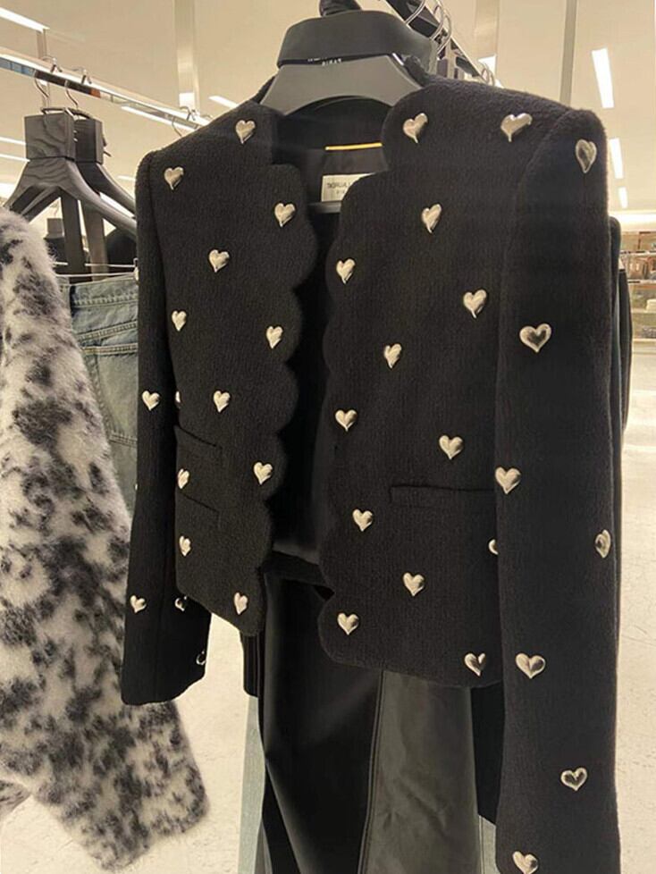 ハートスタッドジャケット ハートスカラップジャケット ノーカラージャケット. レディース ショートジャケット ノーカラー ハート エレガント D282
