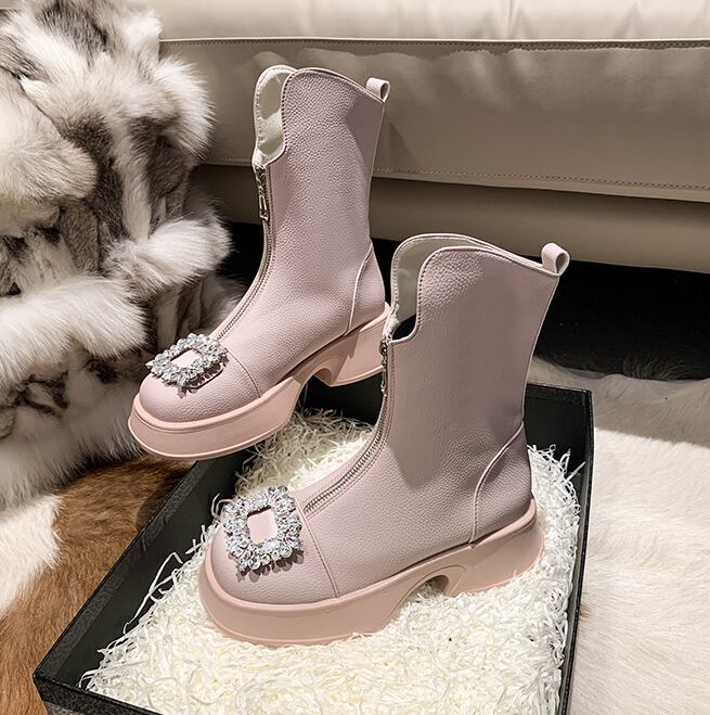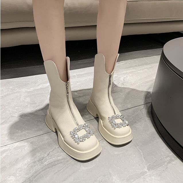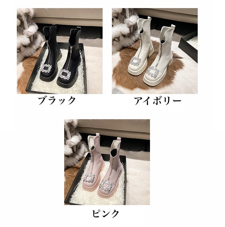 ビジュー厚底ブーツ 厚底ビジューバックルブーツ レザーブーツ. ミドルブーツ 厚底ブーツ. レディース ブーツ 厚底 フロントジッパー 3カラー D283
