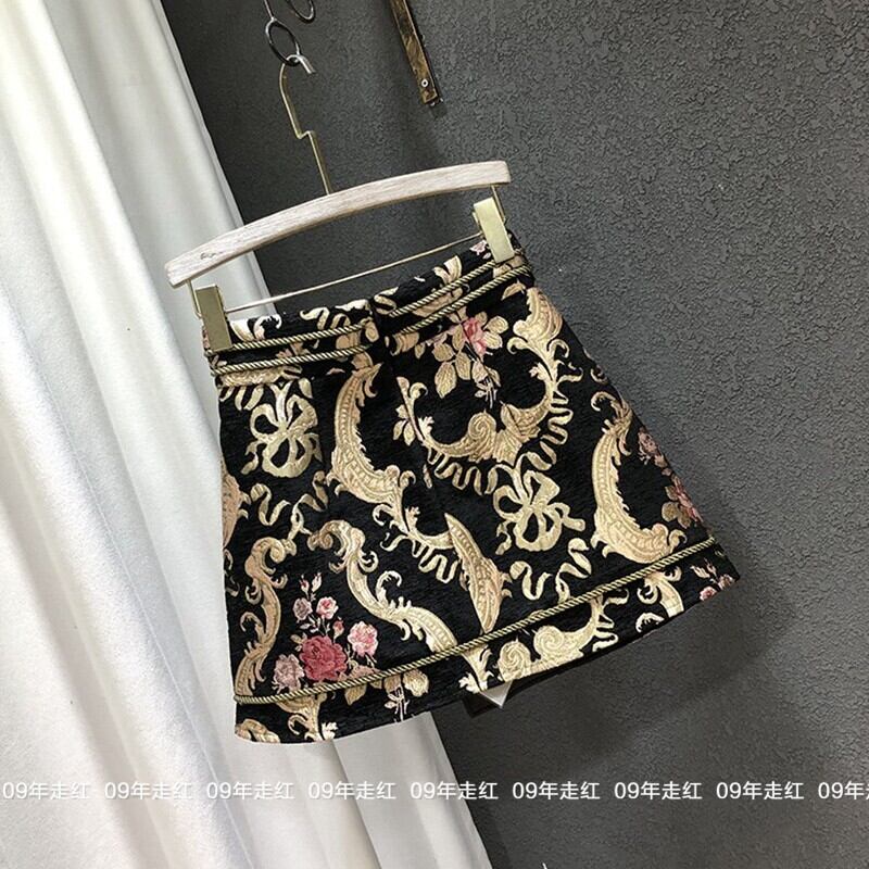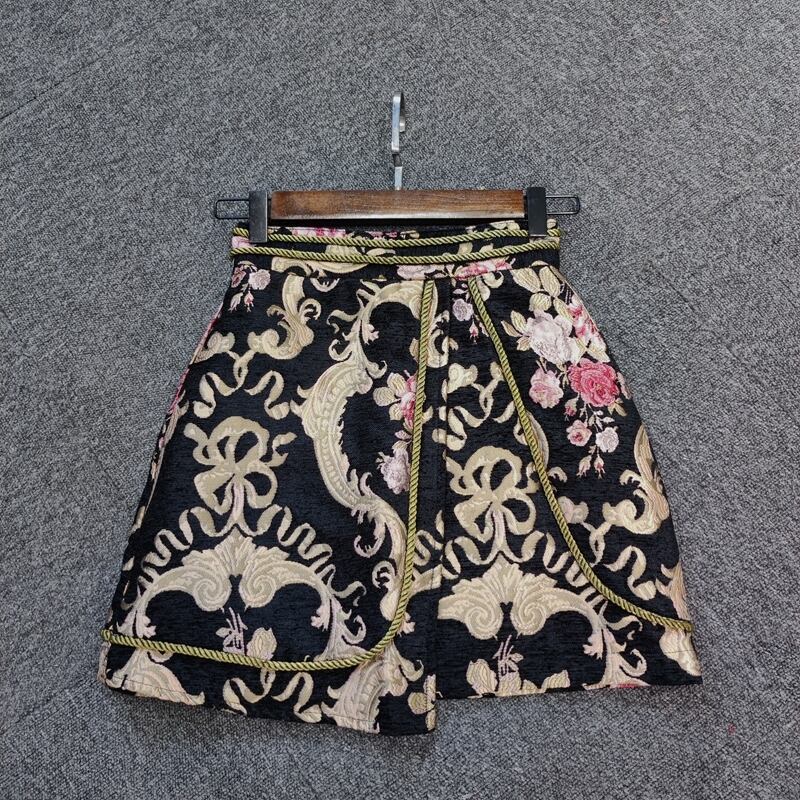 花柄ジャカードラップミニスカート ハイウエスト A ラインスカート ミニスカート ジャカードスカート 花柄 キュロット 刺繍 レディース 上品 綺麗. 可愛い a4577