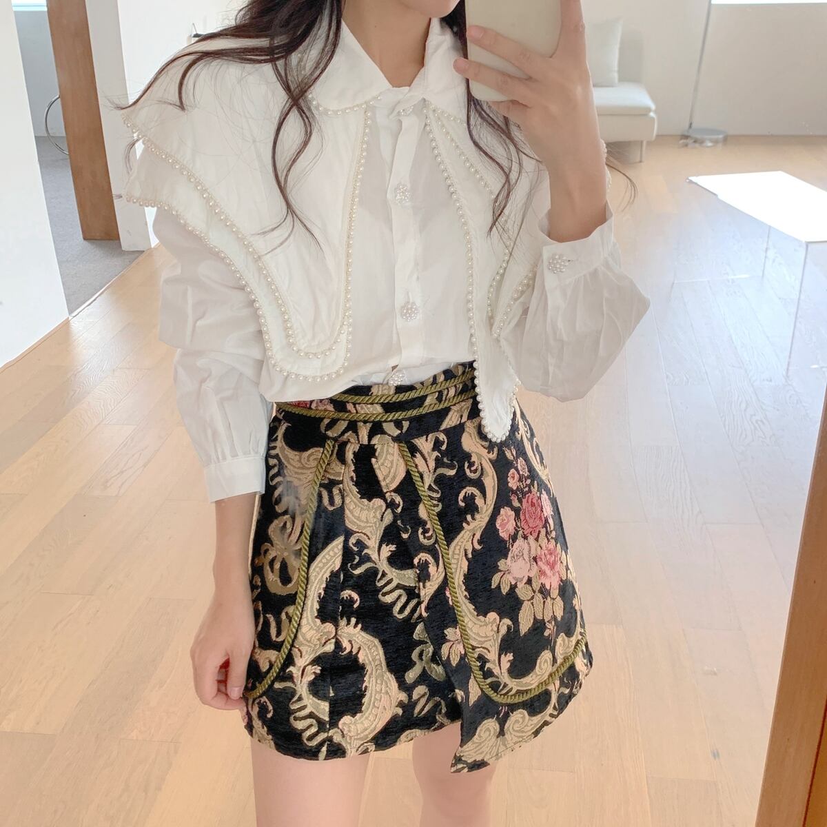 花柄ジャカードラップミニスカート