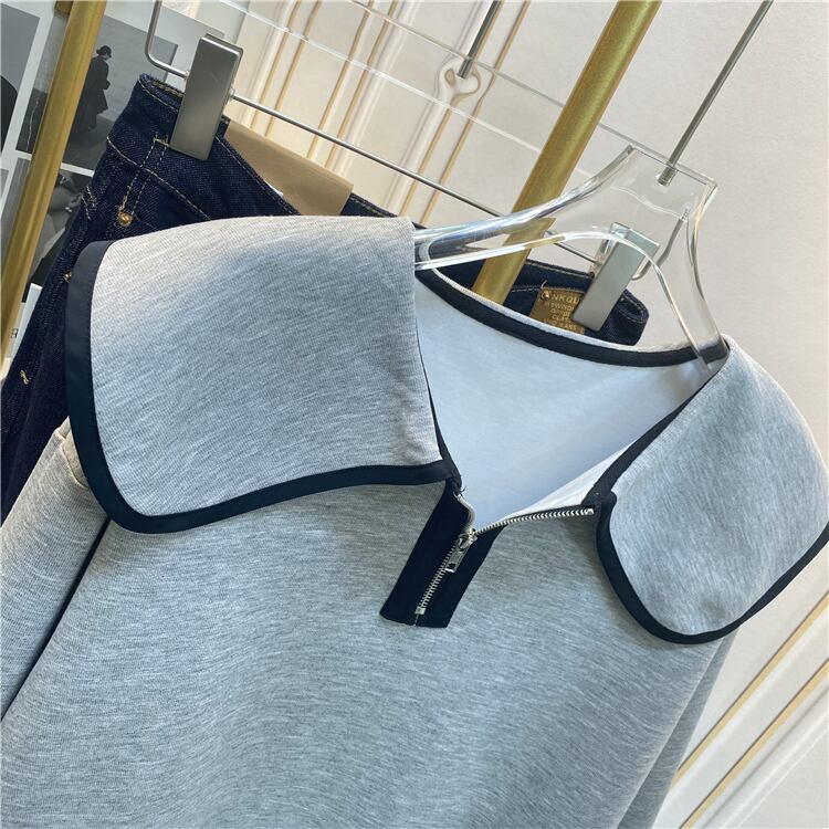 ビッグラペルハーフジップセーター スウェット トレーナー ニット セーター レディース 長袖 ハーフジップ プルオーバー BIG襟 伸縮性 大人かわいい 2カラー C285
