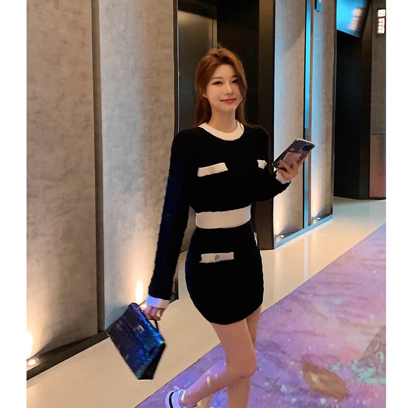 【セットアップ】ワッフル風 長袖セーター+ニットスカート ニットセットアップ ツーピース 上下セット set up レディース ミニ丈 ニット スカート 可愛い 2カラー C253