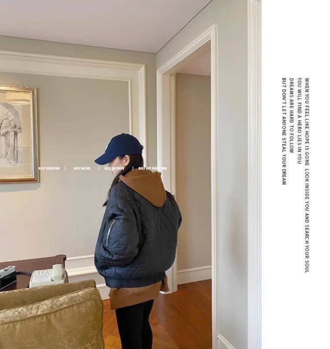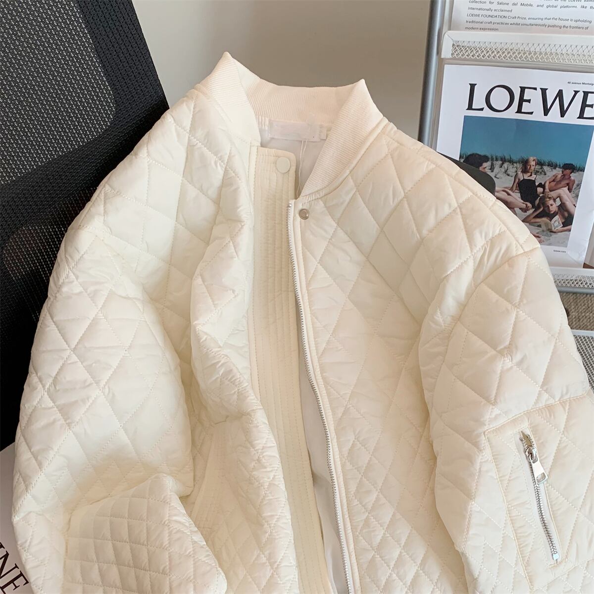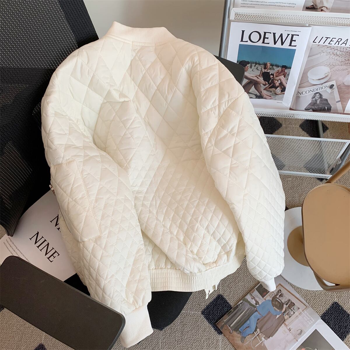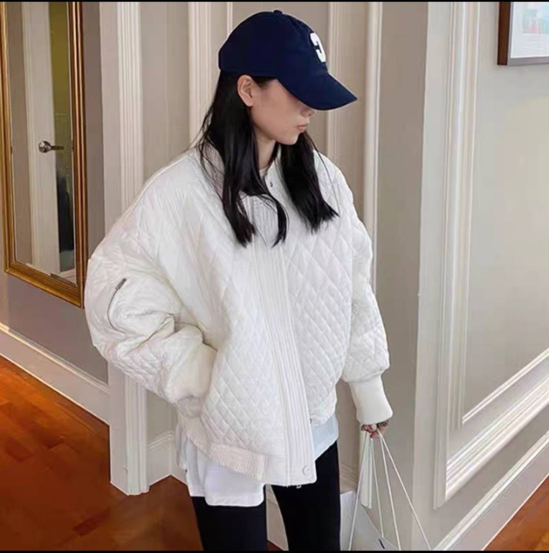 キルティングジャケット コットンジャケット キルティングデザイン 無地 長袖 カジュアル系 大人可愛い フェミニン系 ホワイト・ブラック 黒・白 ポケット ショート丈 ファスナー ジッパー 冬 レディースファッション 可愛い 韓国 お出かけ 20代 30代 40代 3カラー C255