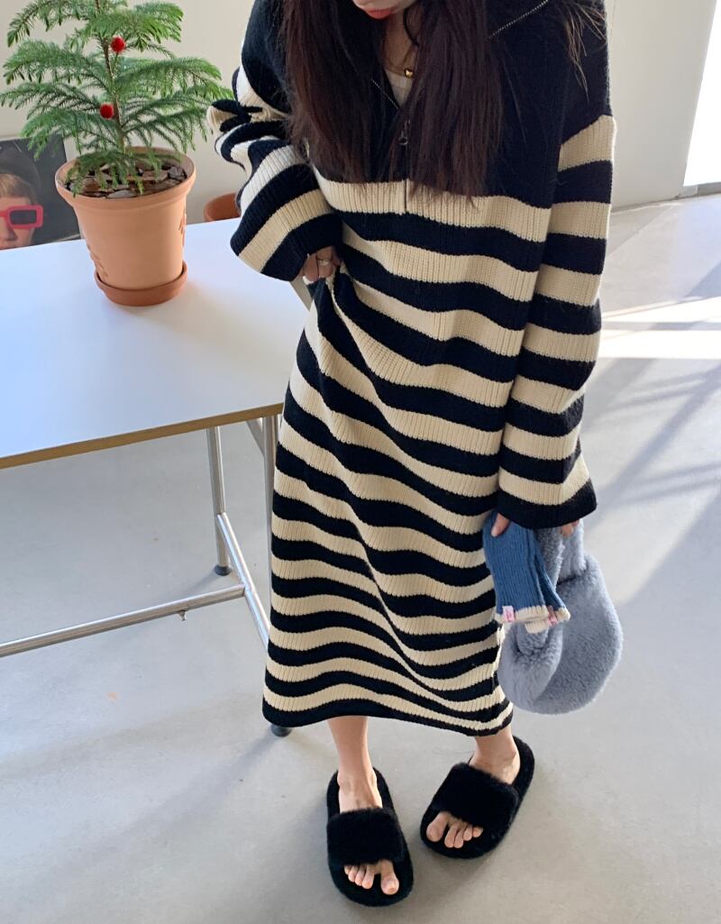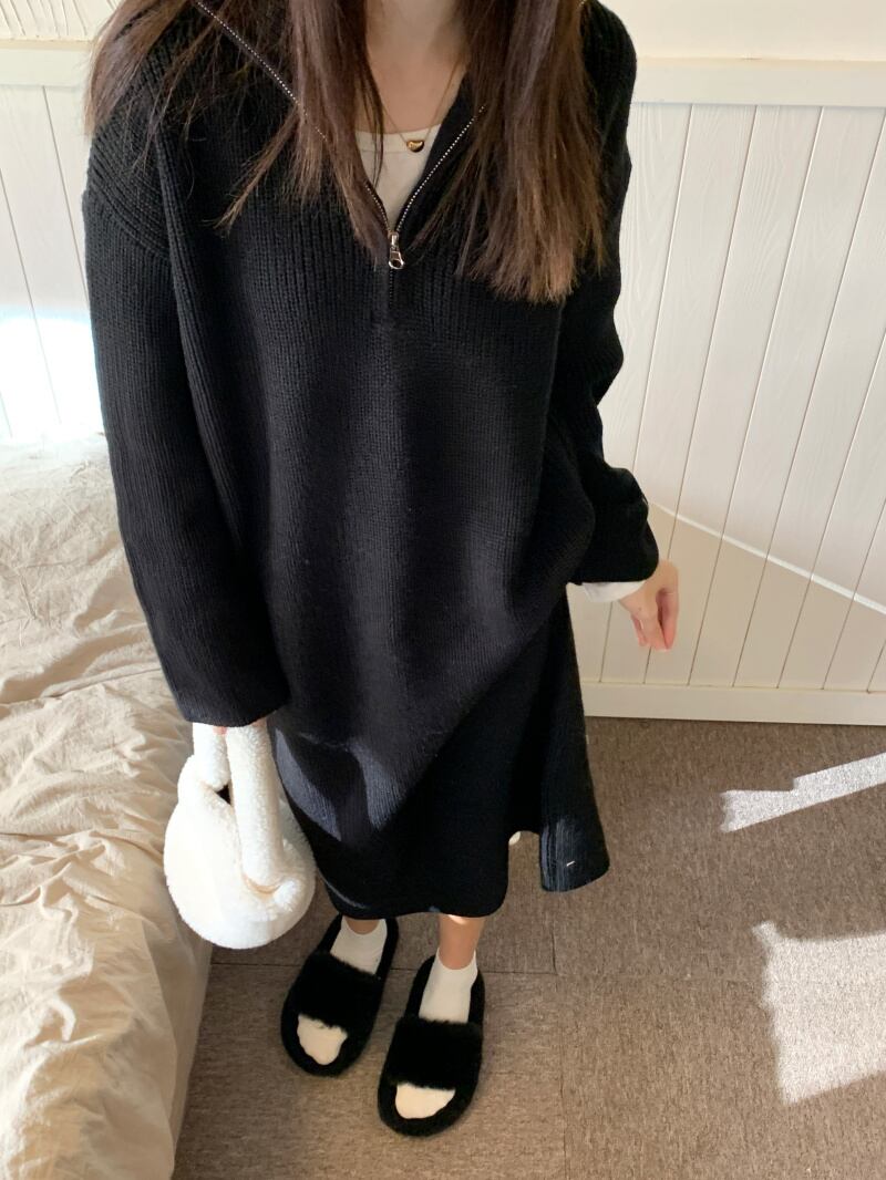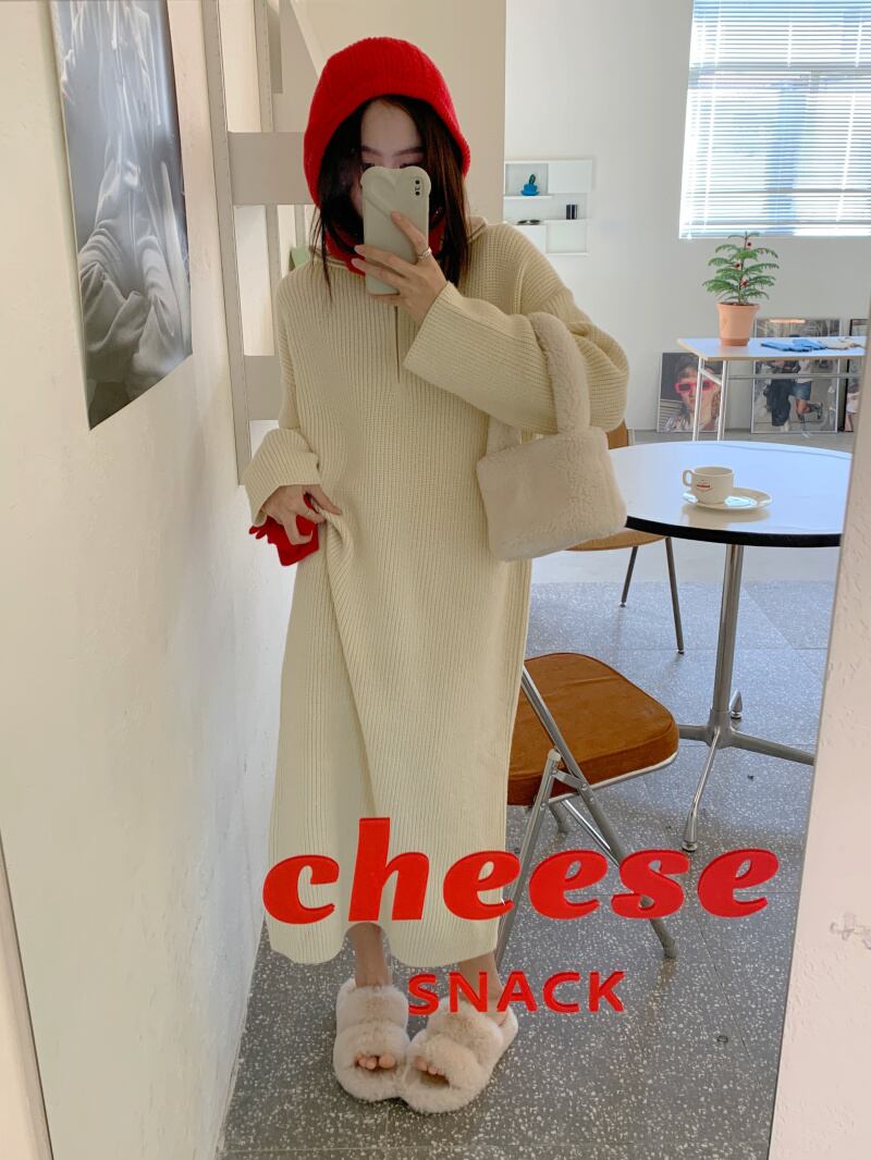ハーフジップニットワンピース セーターワンピ ニットドレス ニットワンピース ゆったり 長袖 ワンピース ドレス レディース 韓国ファッション ルーズ 秋冬 3カラー C249