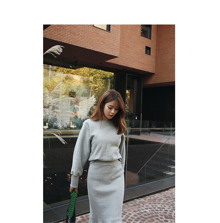 【セットアップ】スウェット+マーメイドスカート ニットアップ. ツーピース 上下セット set up 2点セット スウェット セーター フィッシュテールスカート 2カラー D337