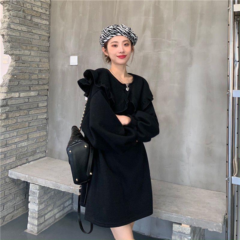 フリルカラーワンピース スウェットワンピース セーターワンピース 長袖ワンピ ガーリー ワンピース ドレス 可愛い 秋冬 レディース ルーズ 膝丈ワンピ 4カラー D360