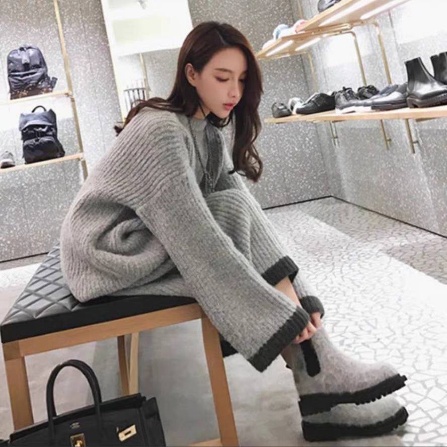 【セットアップ】配色ニット+ニットスカート set up ニットアップ 上下セット 2点セット ニット セーター ニットスカート ハイウエスト ふわふわ 韓国コーデ オルチャン レディース D379