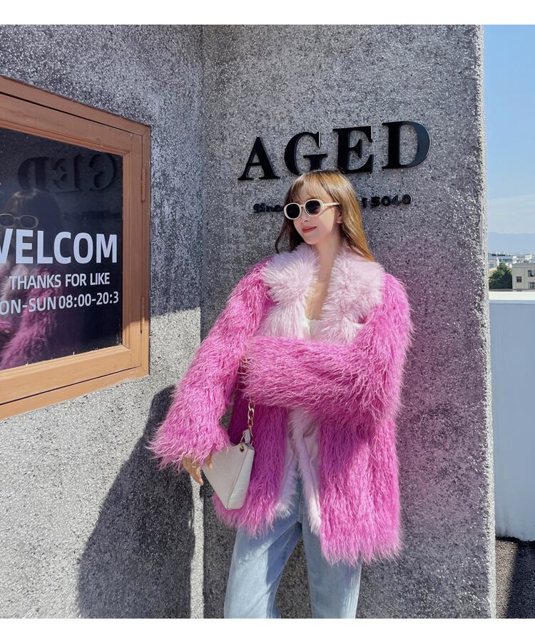 ピンクファーコート ファーコート エコファーコート ジャケット コート アウター エコファー 毛皮 ゴージャス レディース 秋冬 D333