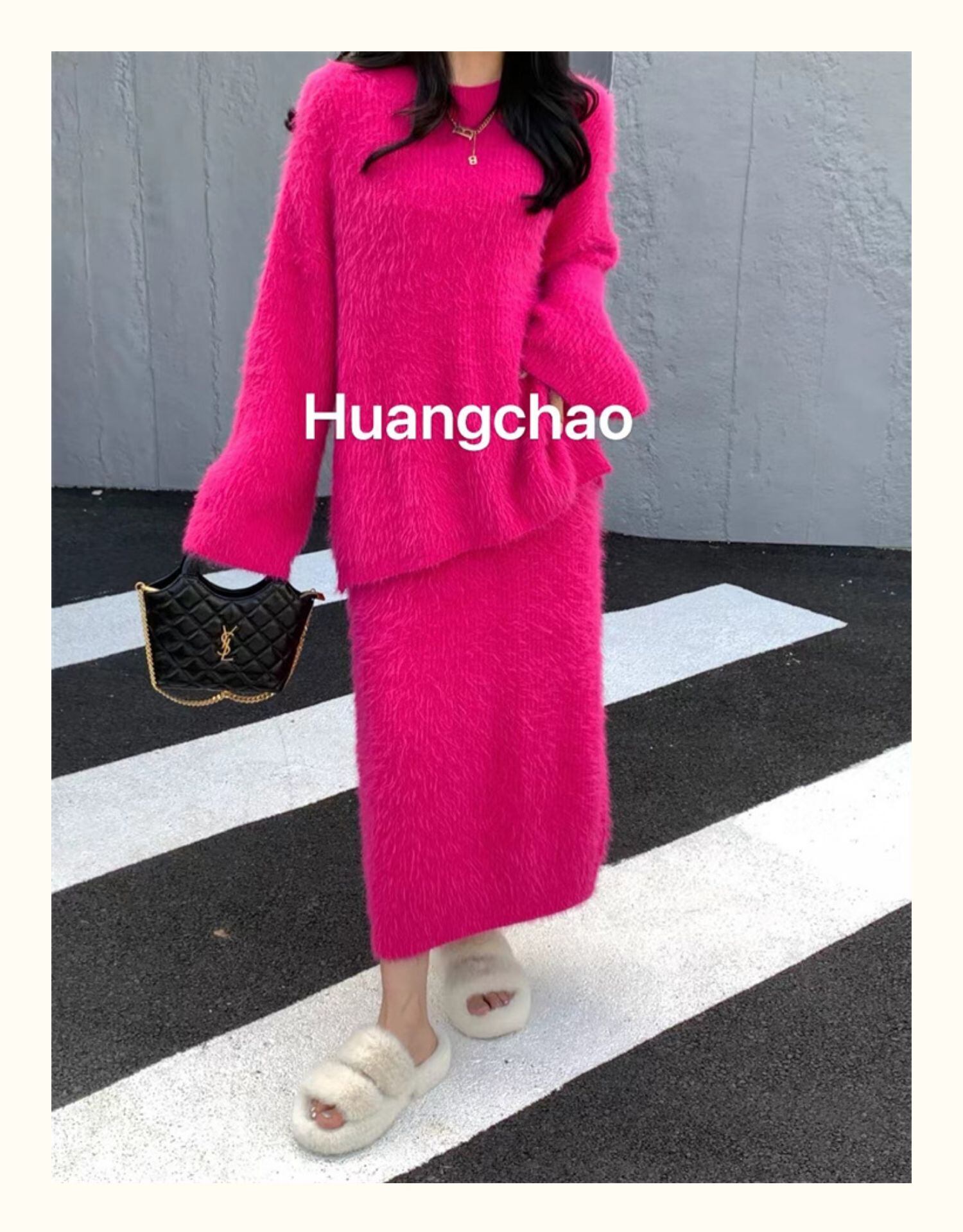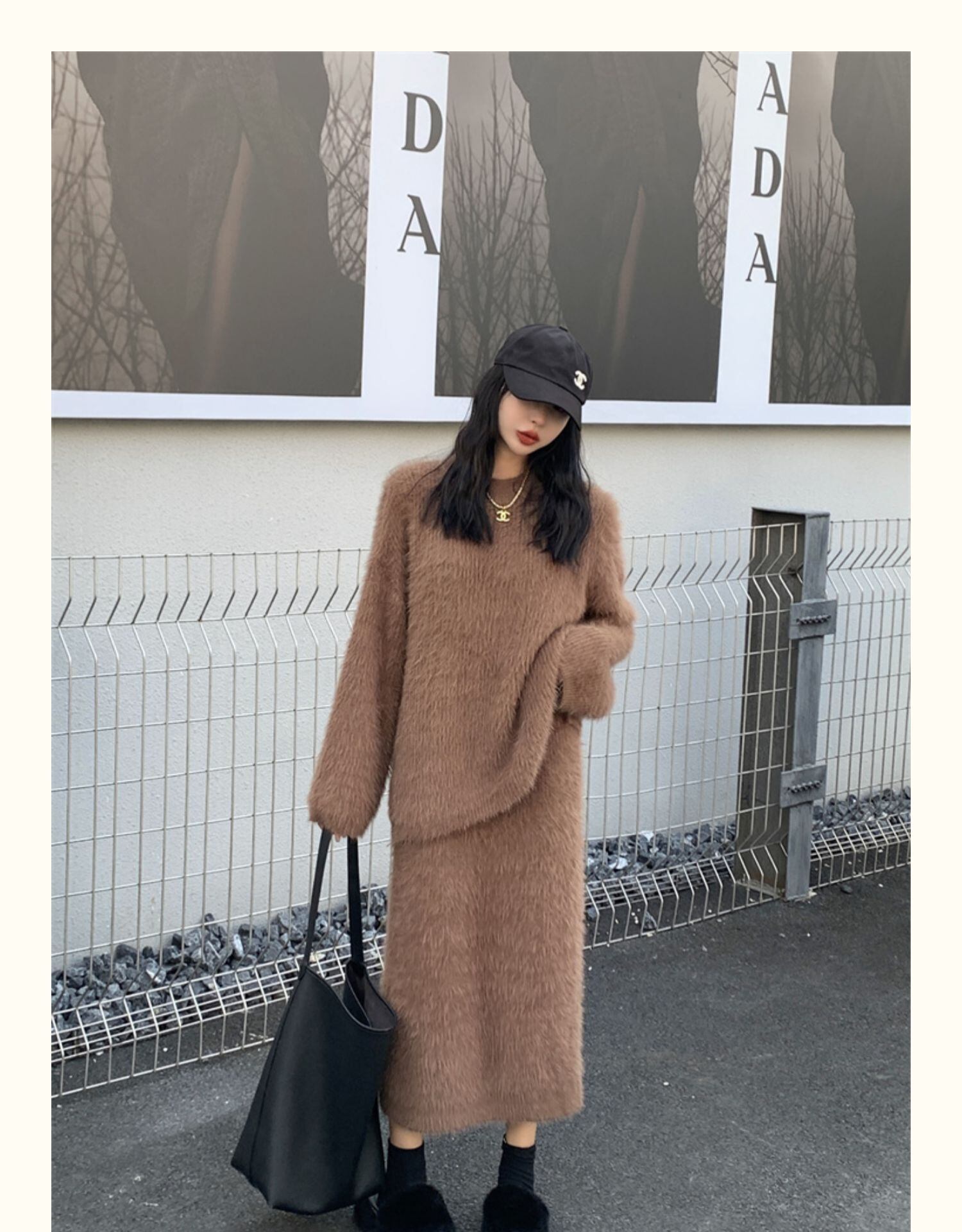 日本未発売【セットアップ】モヘアニット+ニットスカート モヘア ニットアップ 上下セット ツーピース ニット セーター スカート レディース カジュアル ストリートコーデ カラー 8カラー a4595