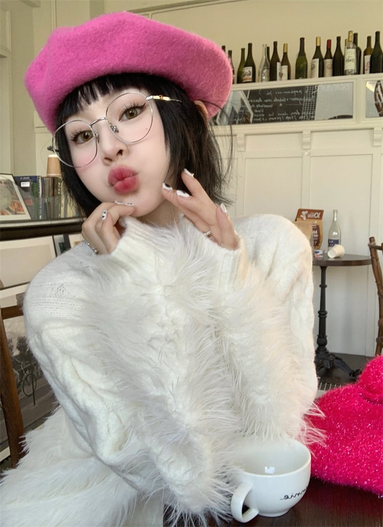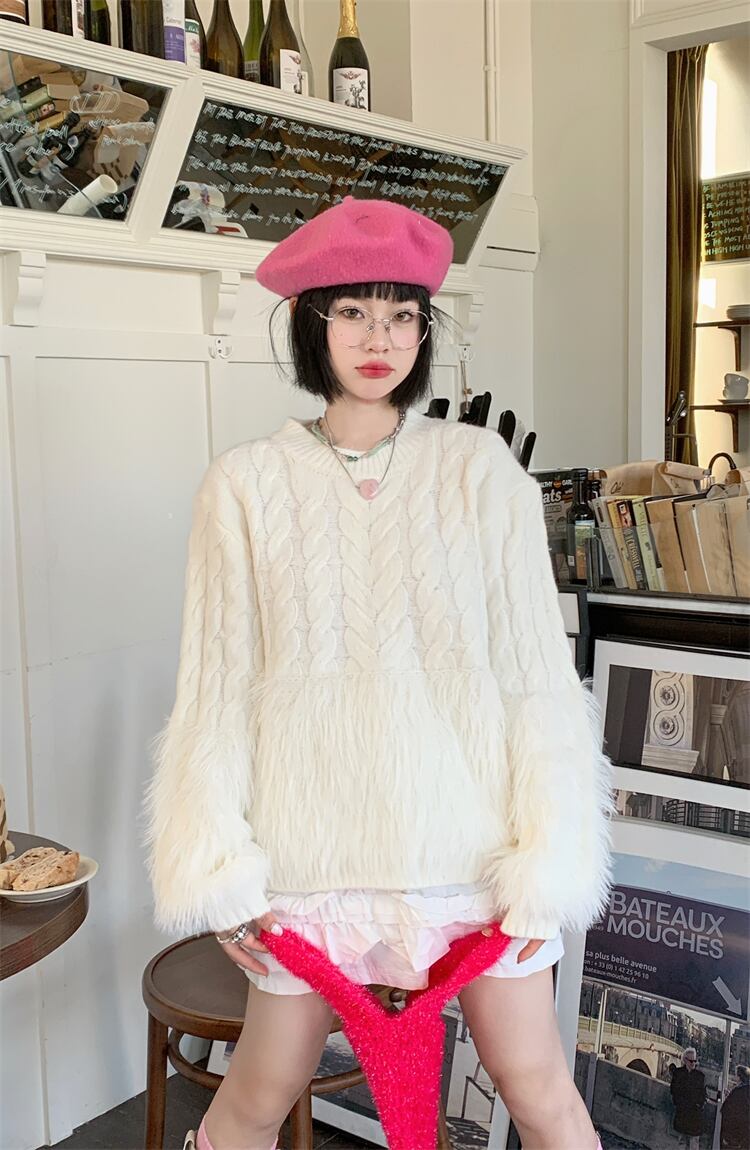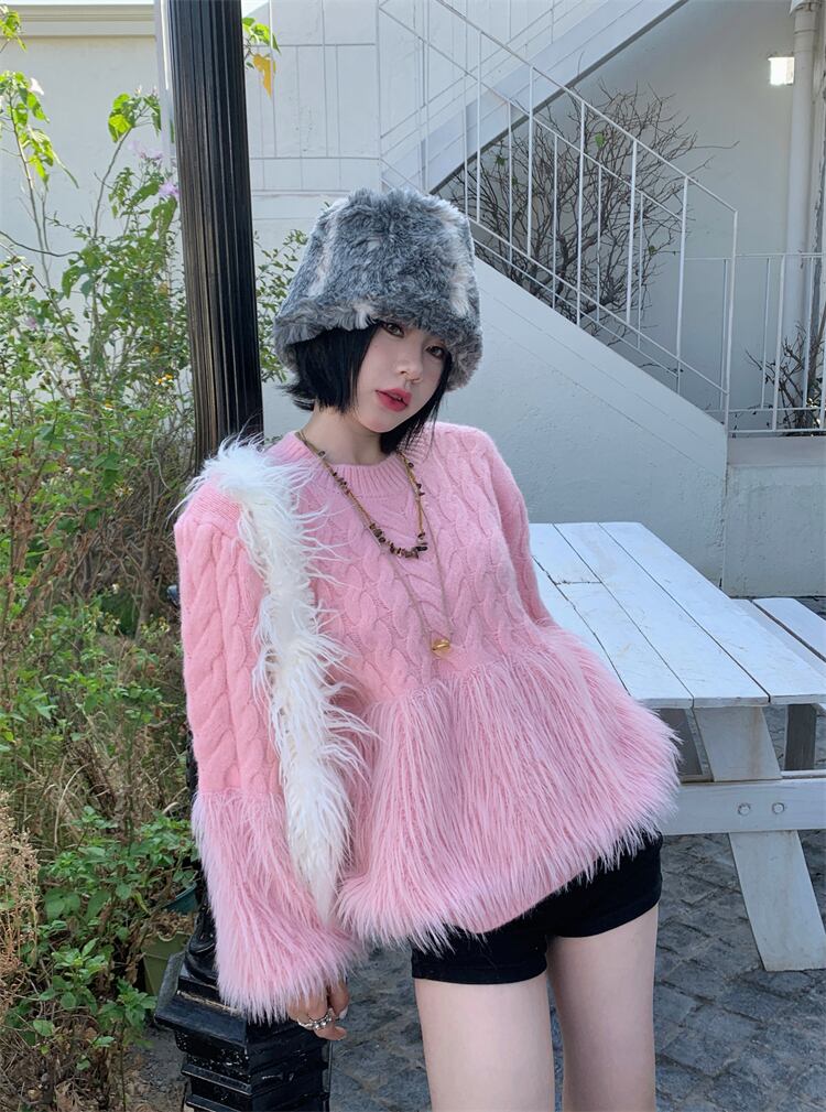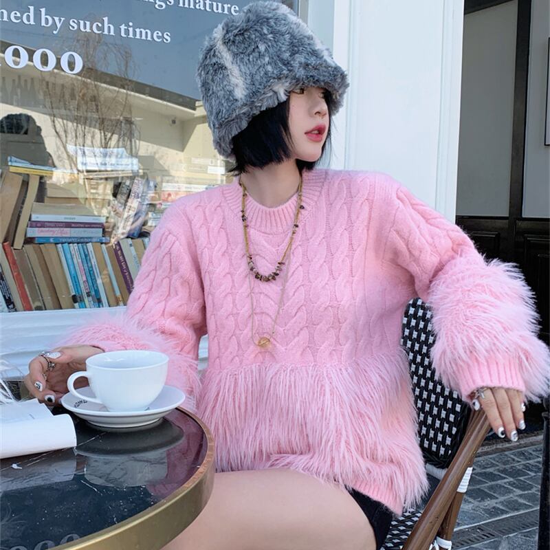 ツイストニット×ファータッセルの組み合わせが可愛いニットセーター