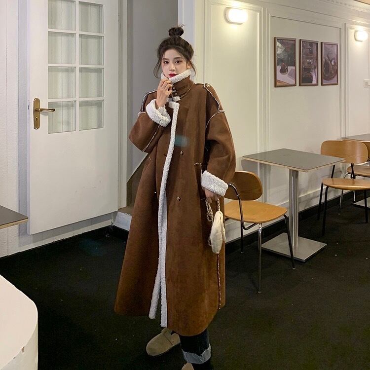 ゆったりとしたサイズ感で着やす丈のフェイクムートンコート