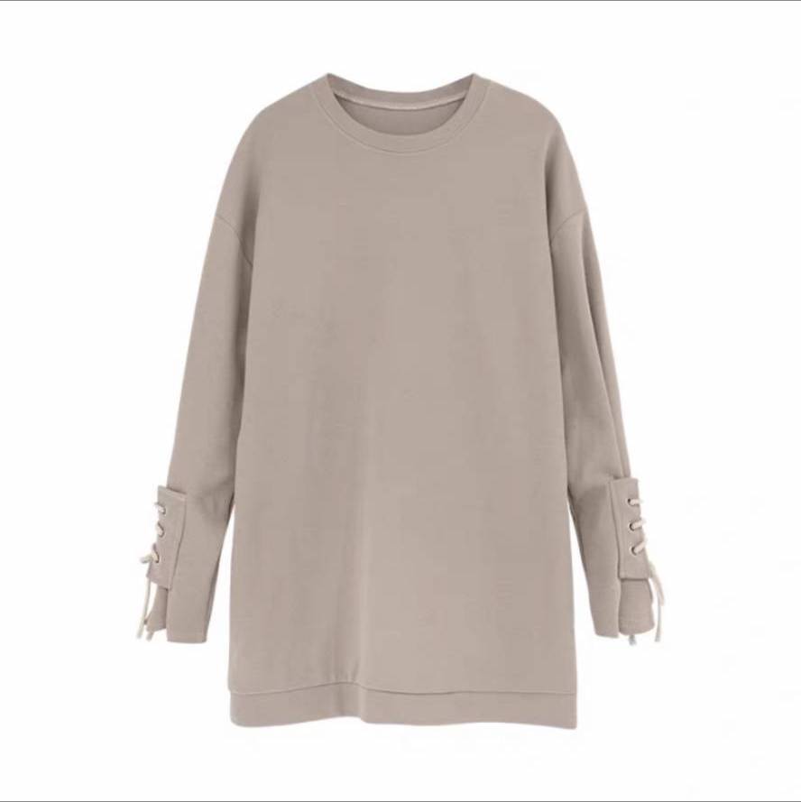 袖リボン プルオーバーセーター トップス オーバーサイズ レディース 長袖 セーター ラウンドネック ミドル丈 カジュアル ママコーデ お仕事コーデ a4584