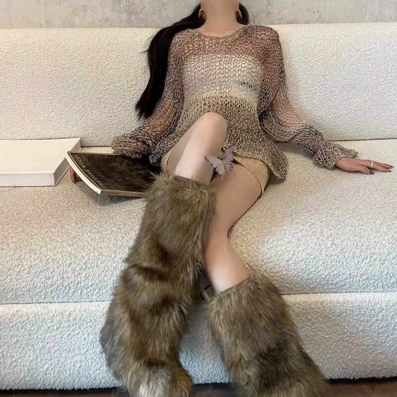 ファーブーツ フェイクファーブーツ ロングブーツ レディース ブーツ ファーロングブーツ もこもこブーツ 防寒 秋 冬 D411