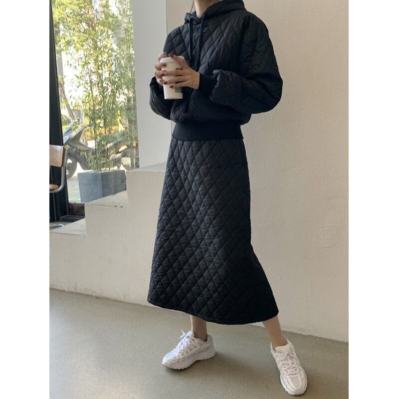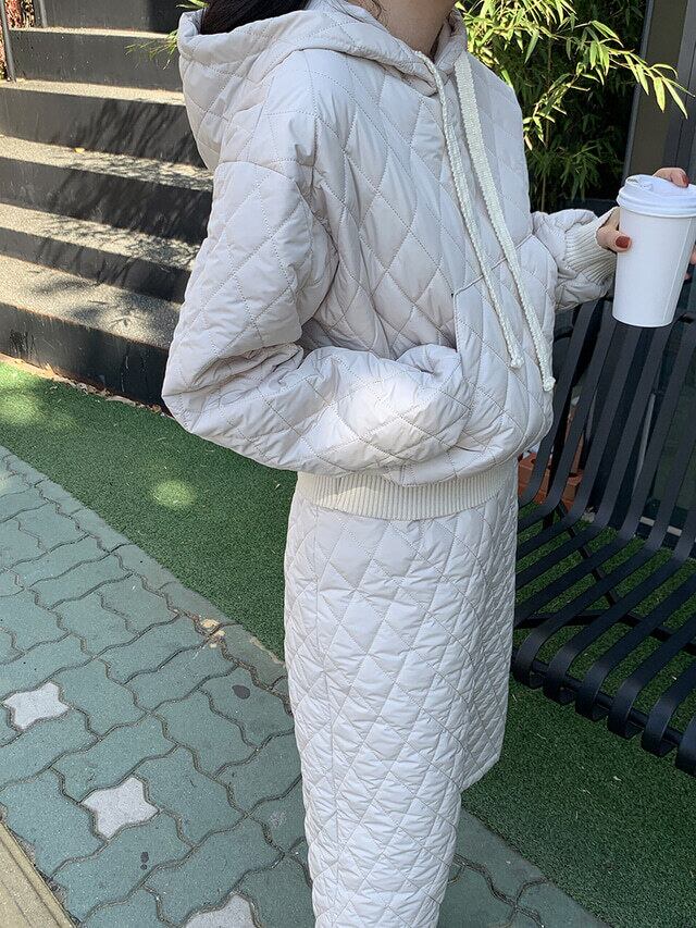 【セットアップ】キルティングフーディー+ハイウエストスカート