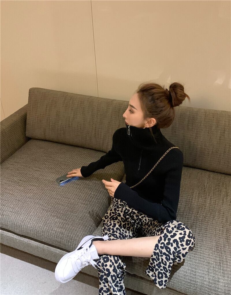 ハーフジップ タートルネックセーター ショート丈ニット リブニット セーター ニット トップス レディース 小顔 可愛い スタイルアップ 韓国 オルチャン 可愛い 通学 デート お出掛け 2カラー a4657