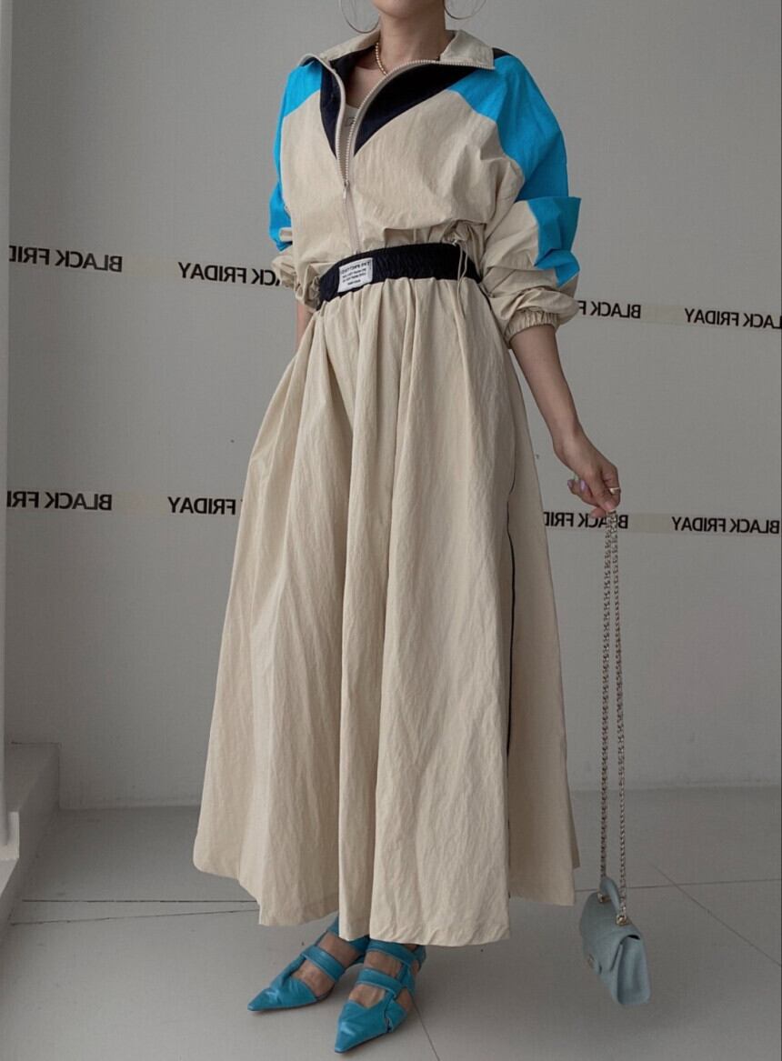 【セットアップ】ショートジャケット+Aラインスカート バイカラー ジャケット スカート スポーティー ツーピース レディース set up 2カラー D16