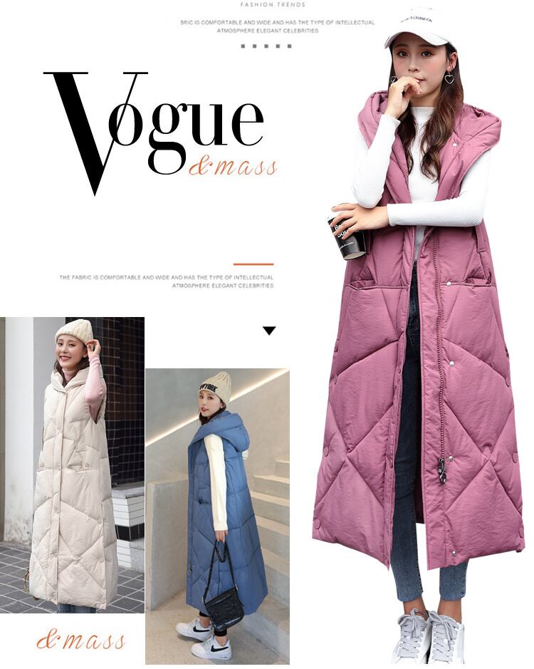 ロングダウンベスト ダウン ベスト ロング レディース モコモコ アウター 長い フード付き ピンク 白 ブルー 黒 無地 袖なし 可愛い 大人可愛い かっこいい おしゃれ カジュアル 暖かい 防寒 こなれ感 M L XL インスタ映え 秋 冬 10代 20代 30代 40代 通勤 学生 女子会 休日 普段使い お散歩 4カラー C287