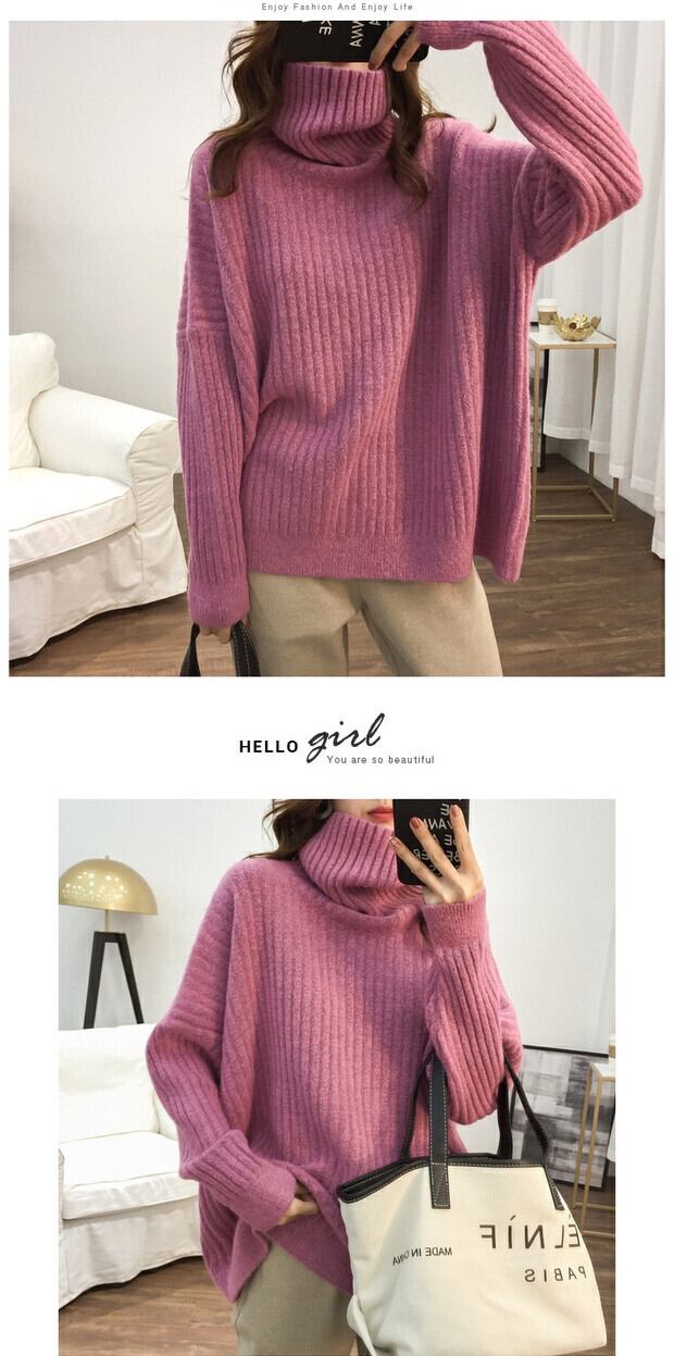 小顔効果・カラバリ豊富なハイネックニットセーター