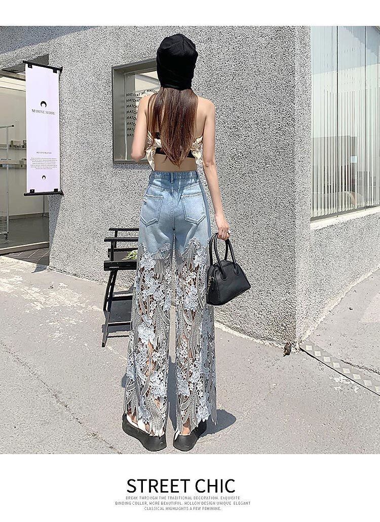 シアーレースデニム シアーレースジーンズ ワイドデニムパンツ 異素材ジーンズ. ワイドパンツ ボトムス 可愛い レースパンツ 総レース ワイドパンツ レディース ガウチョパンツ ロング丈 美脚 フレアパンツ 春 夏 ゆったり 春夏 涼しい きれいめ a4598