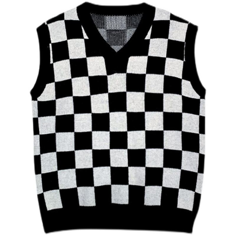 チェッカーボード柄 ニットベスト ベスト ニット セーター レディース 可愛い トレンド