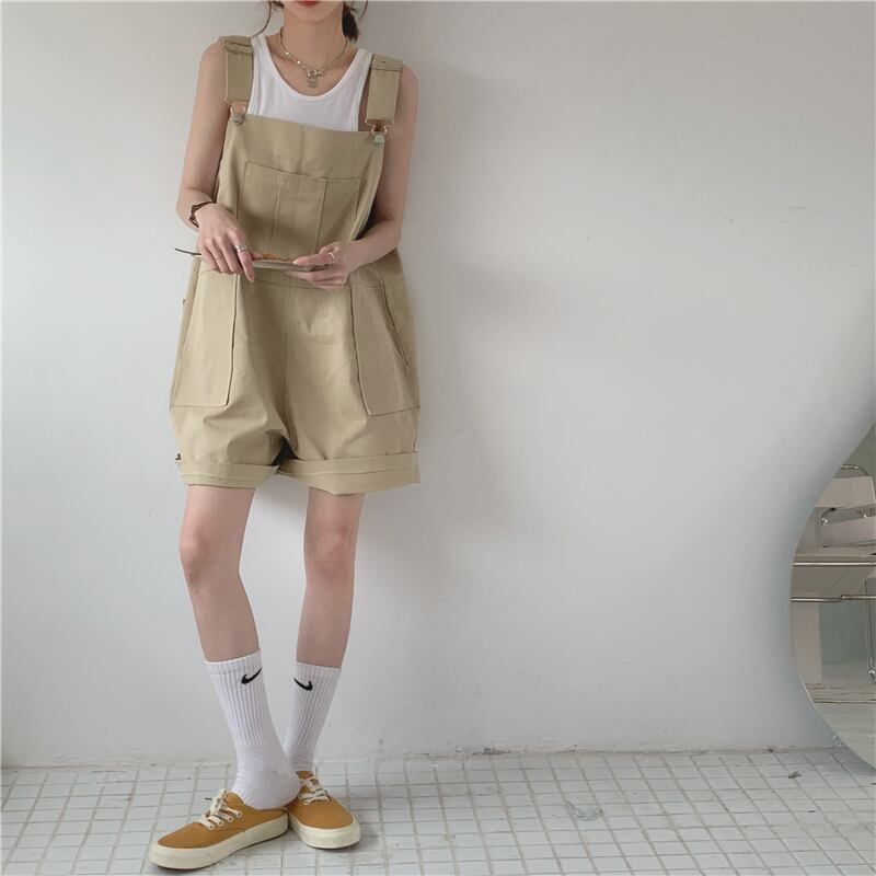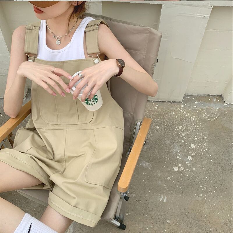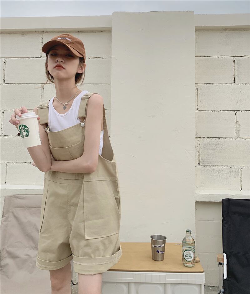 サロペット ショート丈 オールインワン レディース 可愛い オーバーオール 膝上丈 体型カバー パンツ スーツ カジュアル お洒落 ボトムス ゆったり ハーフパンツ 無地2カラー a4610