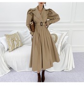 プリーツトレンチコート スタイリスト レディース プリーツ トレンチコート 春 秋 ロングコート アウター ジャケット コート パフスリーブ 韓国 ママコーデ お仕事コーデ AA1904