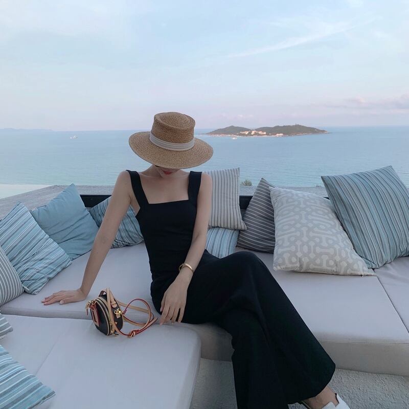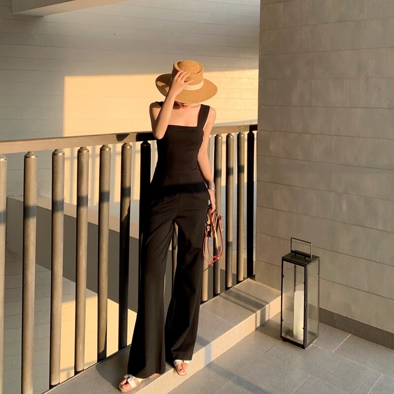 オールインワン ジャンプスーツ ノースリーブ つなぎ サロペット ロングパンツ ワイドパンツ リゾート ロング丈 マキシ丈 黒 無地 春 夏 海 ビーチ デイリーおしゃれ S~XLサイズ 大きいサイズ 大人可愛い 2カラー aa4734