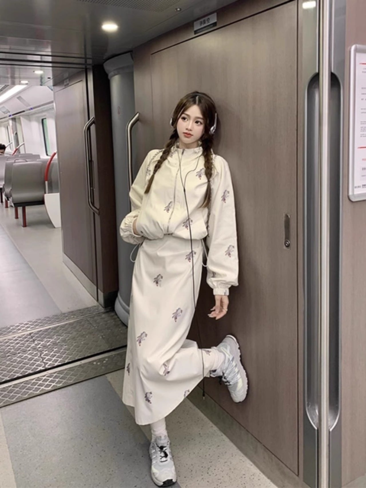 【セットアップ】ジャケット+ワンピース ジャンパー ブルゾン ワンピース ツーピース 2点セット キャミソールワンピース set up 可愛い デート アメカジ カジュアル ストリート レディース D516