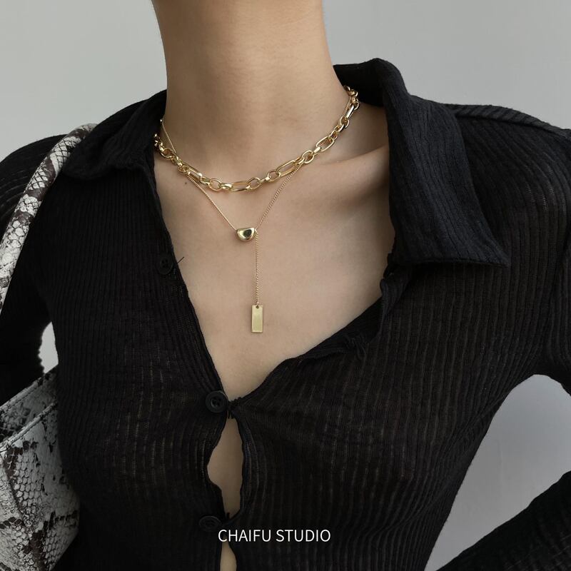 ダブルチェーンネックレス チェーン ネックレス アクセサリー necklace 大ぶりチェーン ごつめ ショート ヒップホップ 2カラー D71