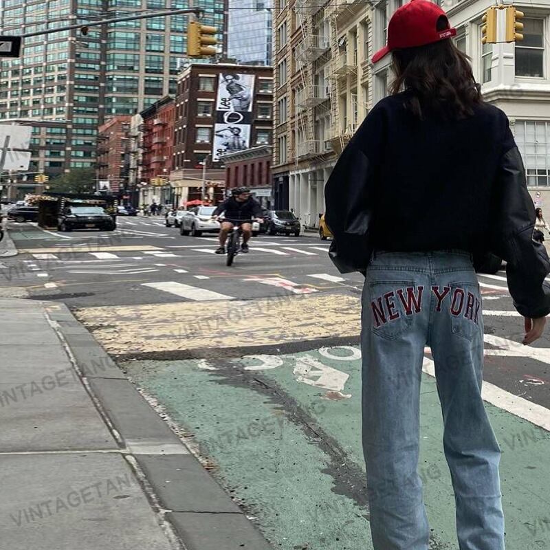 英字ロゴジーンズ ストレートジーンズ. ハイウエスト ジーンズ デニム レディース ゆったり アメカジコーデ カジュアル ストリートコーデ ヒップホップ 可愛い オシャレ かっこいい ライトブルー ボトムス D130