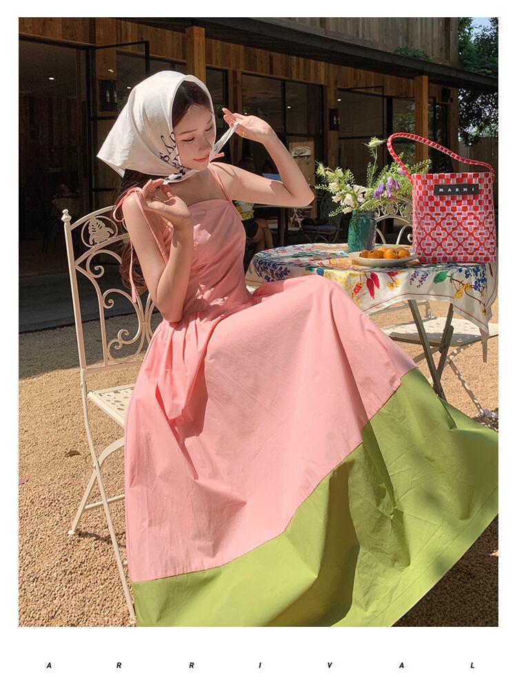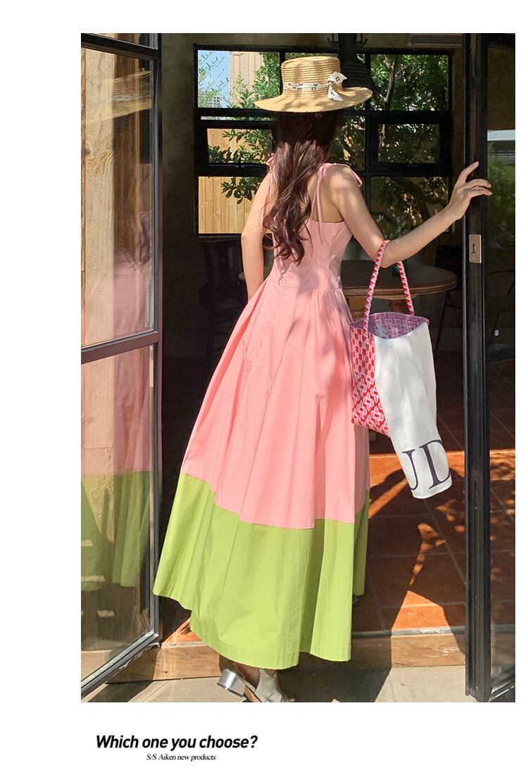 バイカラーキャミソールワンピース 切り替えワンピ キャミソールワンピース Aラインロングワンピース 肩紐リボン ビーチドレス ロングワンピース ワンピース ドレス レディース サマードレス 韓国コーデ 綺麗 大人上品 パーティー お呼ばれコーデ デート a4753